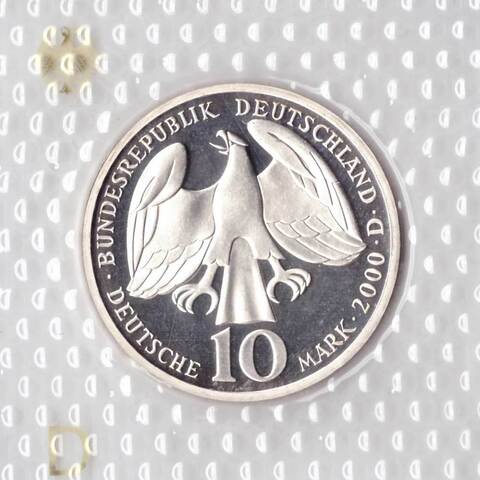 10 марок. 250 лет со дня смерти Иоганна Себастьяна Баха (D). Серебро. 2000 г. PROOF. В родной запайке