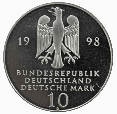 10 марок. 300 лет Франкскому благотворительному фонду (G). Серебро. 1998 г. PROOF. В родной запайке