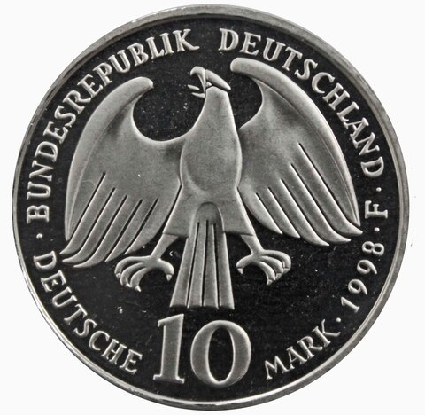 10 марок. 350 лет подписания Вестфальского Мирного Договора (F). Серебро. 1998 г. PROOF. В родной запайкее