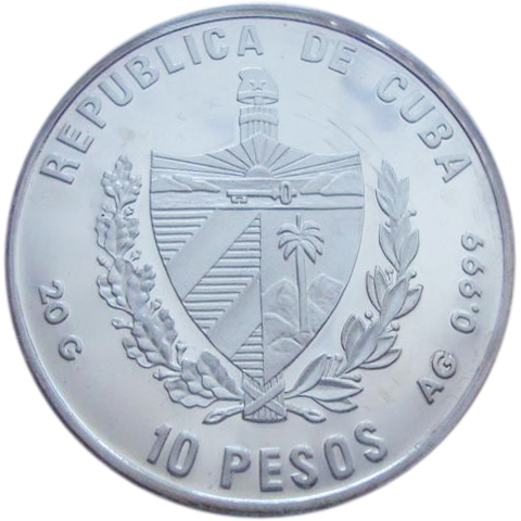 10 песо. Жёлтый окунь. Куба. Серебро. 1996 год