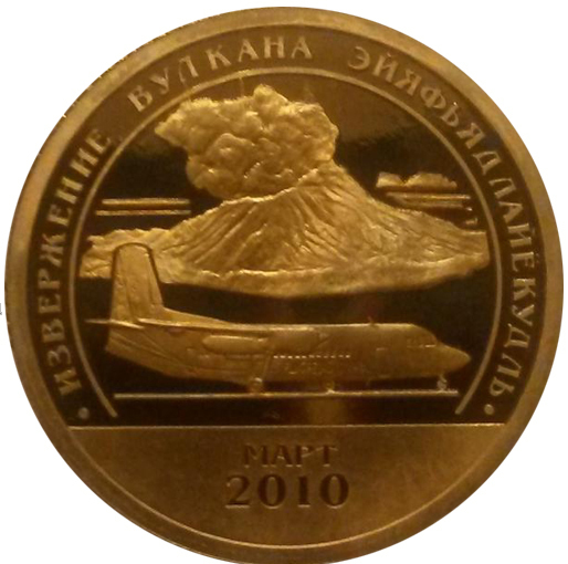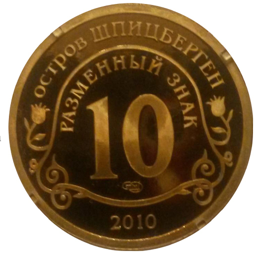 10 разменных знаков, 2010 год. СПМД, Извержение вулкана . Остров Шпицберген. Бронза