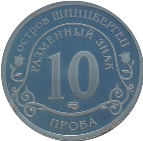 10 разменных знаков, 2010 год, СПМД, Извержение вулкана в Исландии. Остров Шпицберген.Проба. Алюминий