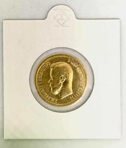 Реверс: слева вдоль края монеты надпись «Б.М. НИКОЛАЙ II ИМПЕРАТОР», справа вдоль края монеты надпись «И САМОДЕРЖЕЦ ВСЕРОСС.», в середине обращенная влево голова Императора Российской империи Николая II.
