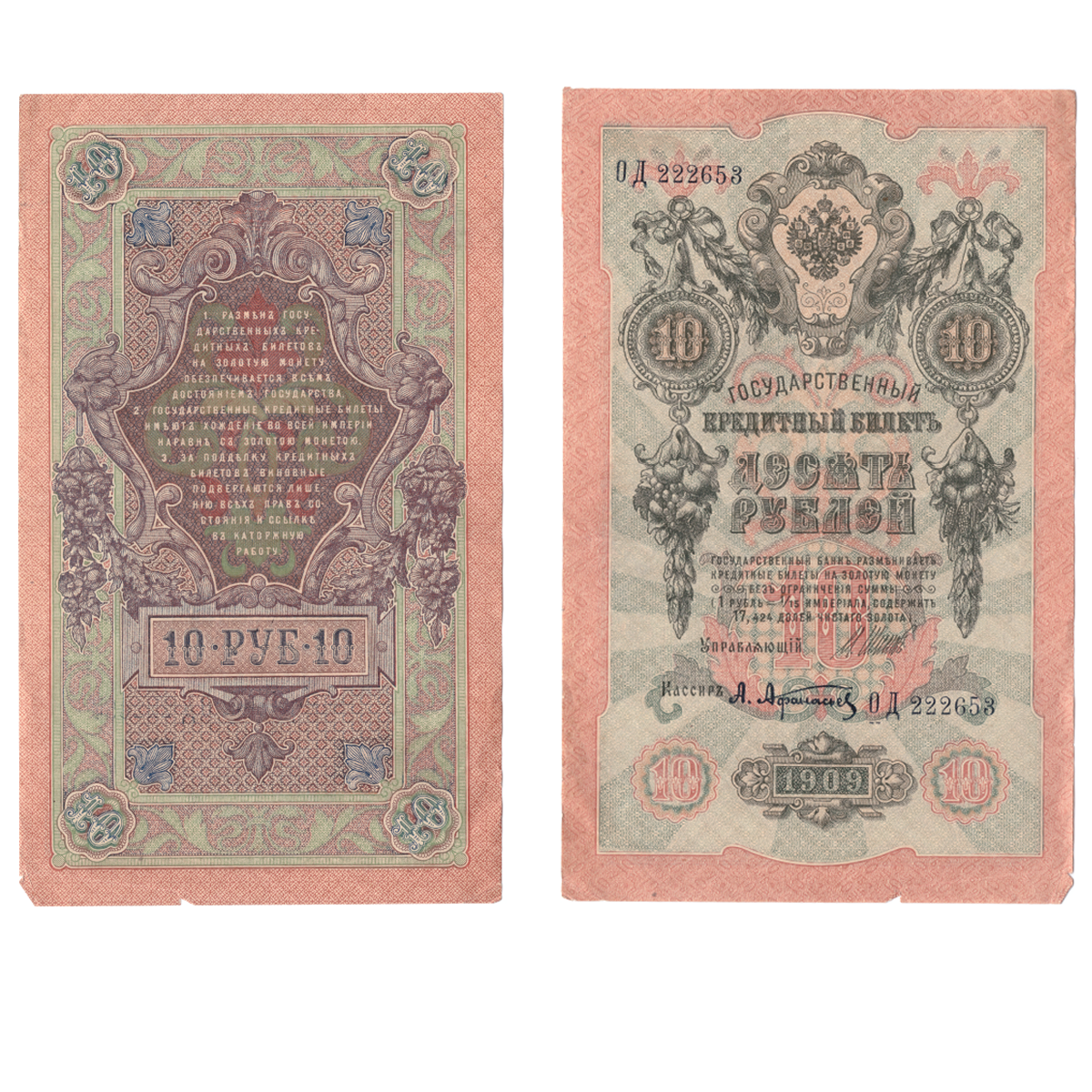 Кредитный билет 10 рублей 1909 год Poor надрывы