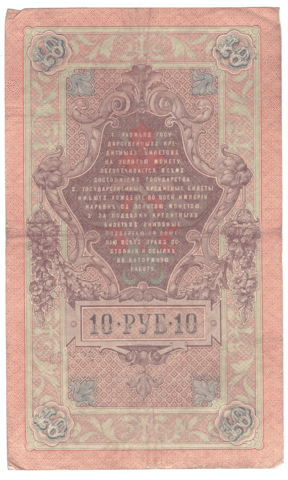 10 рублей 1909 года ЕЪ 686764 (управляющий Шипов/кассир Афанасьев) F-VF