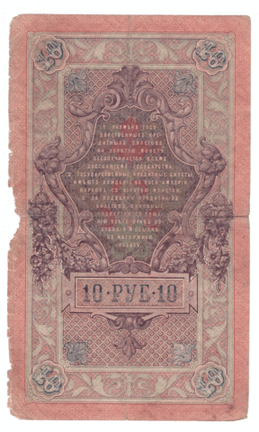 10 рублей 1909 года ИТ 441943 (управляющий Шипов/кассир Иванов) VG-F