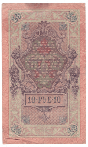10 рублей 1909 года КС 834306 (управляющий Шипов/кассир Овчинников) VG-F