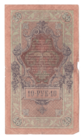 10 рублей 1909 года ОБ 711989 (управляющий Шипов/кассир Богатырев) VG-F