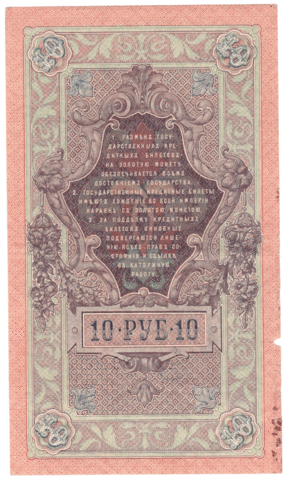 10 рублей 1909 года СО 263777 (управляющий Шипов/кассир Метц) VG-F