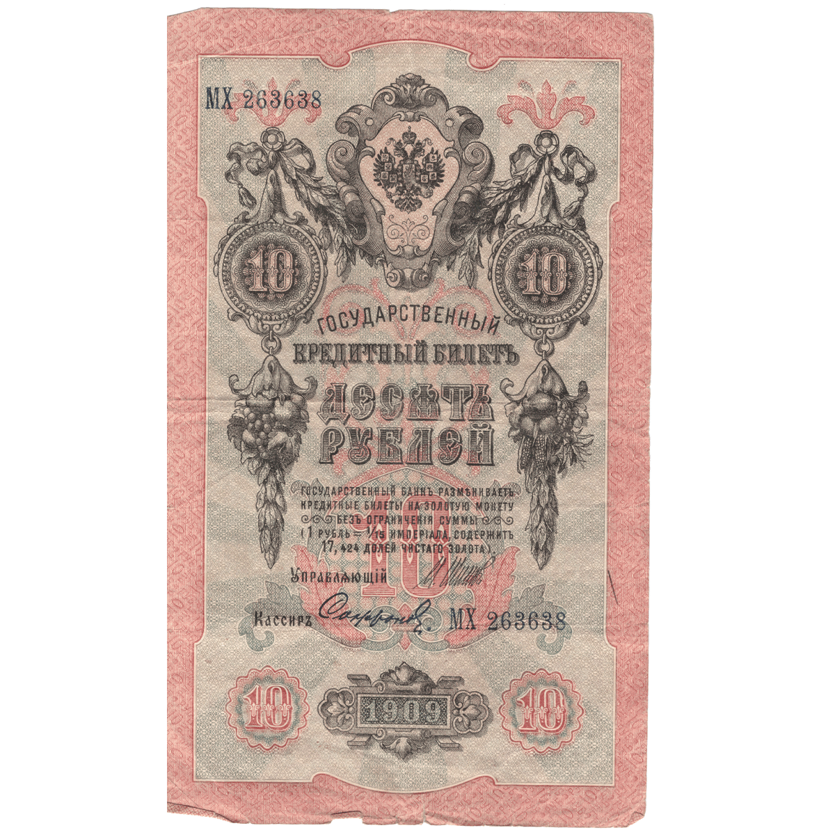 10 рублей 1909 VG