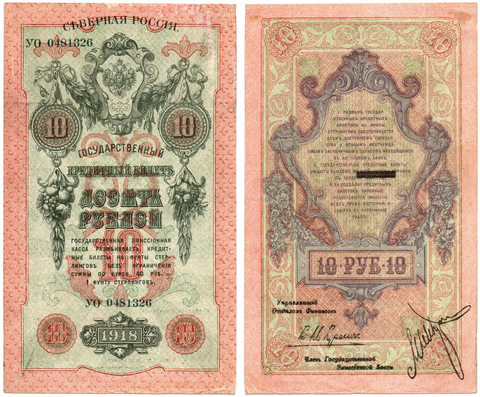 10 рублей 1918 г. Северная Россия. Государственный кредитный билет