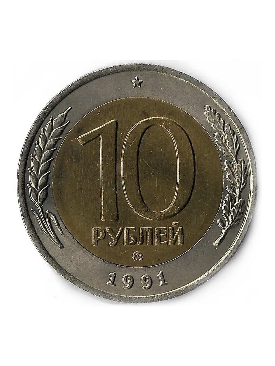 10 рублей, выпущенные в 1991 году, имели существенное внешние отличие от всех других раннее выпускавшихся монет СССР. Выполнены они были в биметаллическом варианте, из медно-никелевого (центральный диск) и медно-цинкового (обод) сплавов. Основной тираж был отчеканен на Ленинградском монетном дворе, одновременно производился чекан этой монеты и на ММД, но значительно меньшим тиражом.