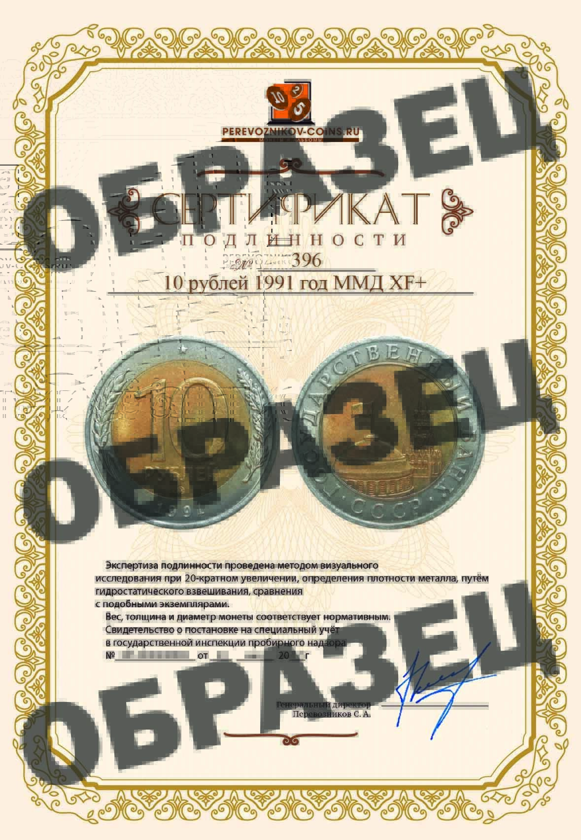 10 рублей, выпущенные в 1991 году, имели существенное внешние отличие от всех других раннее выпускавшихся монет СССР. Выполнены они были в биметаллическом варианте, из медно-никелевого (центральный диск) и медно-цинкового (обод) сплавов. Основной тираж был отчеканен на Ленинградском монетном дворе, одновременно производился чекан этой монеты и на ММД, но значительно меньшим тиражом.
