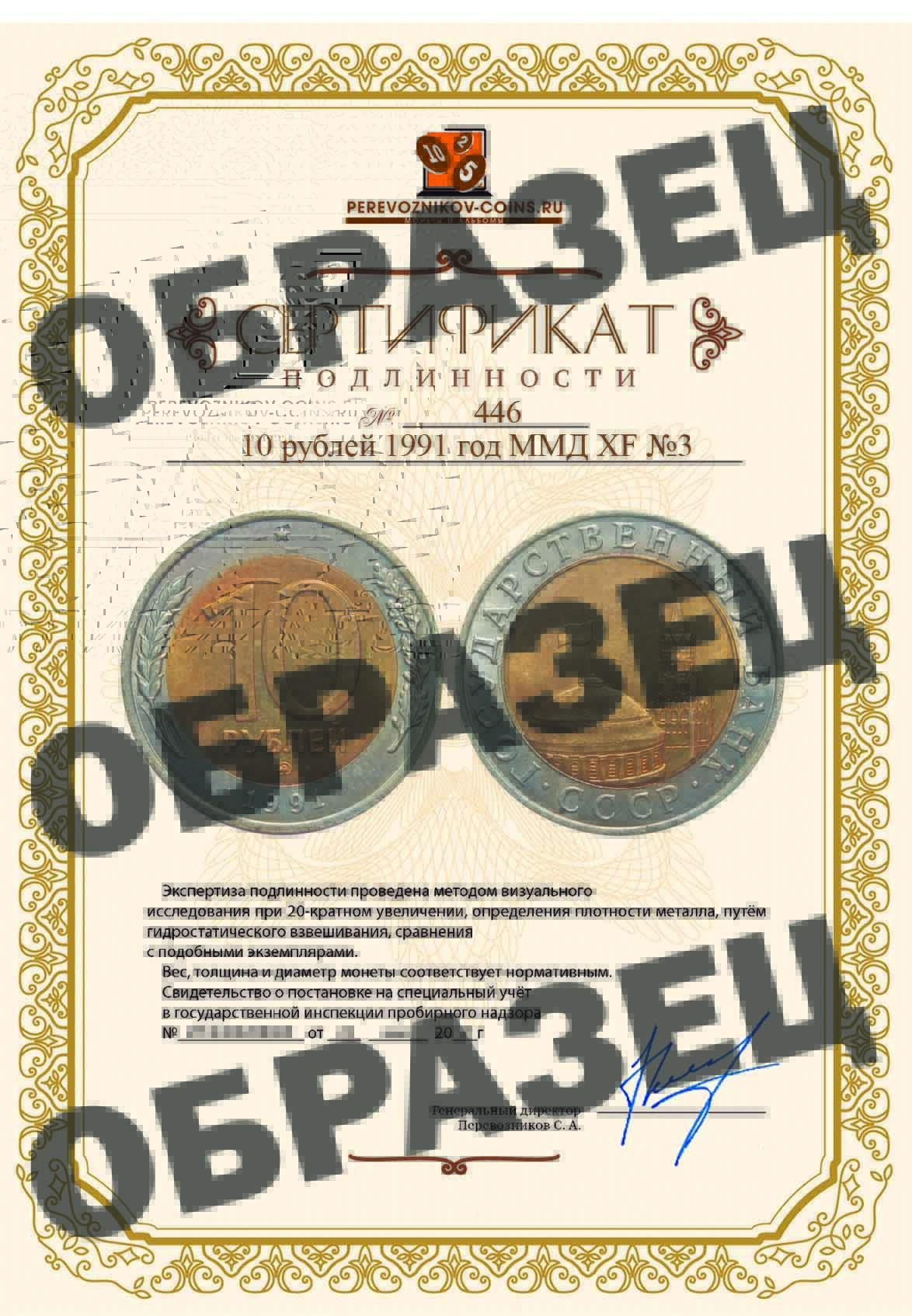 Сертификат подлинности: | 446 |