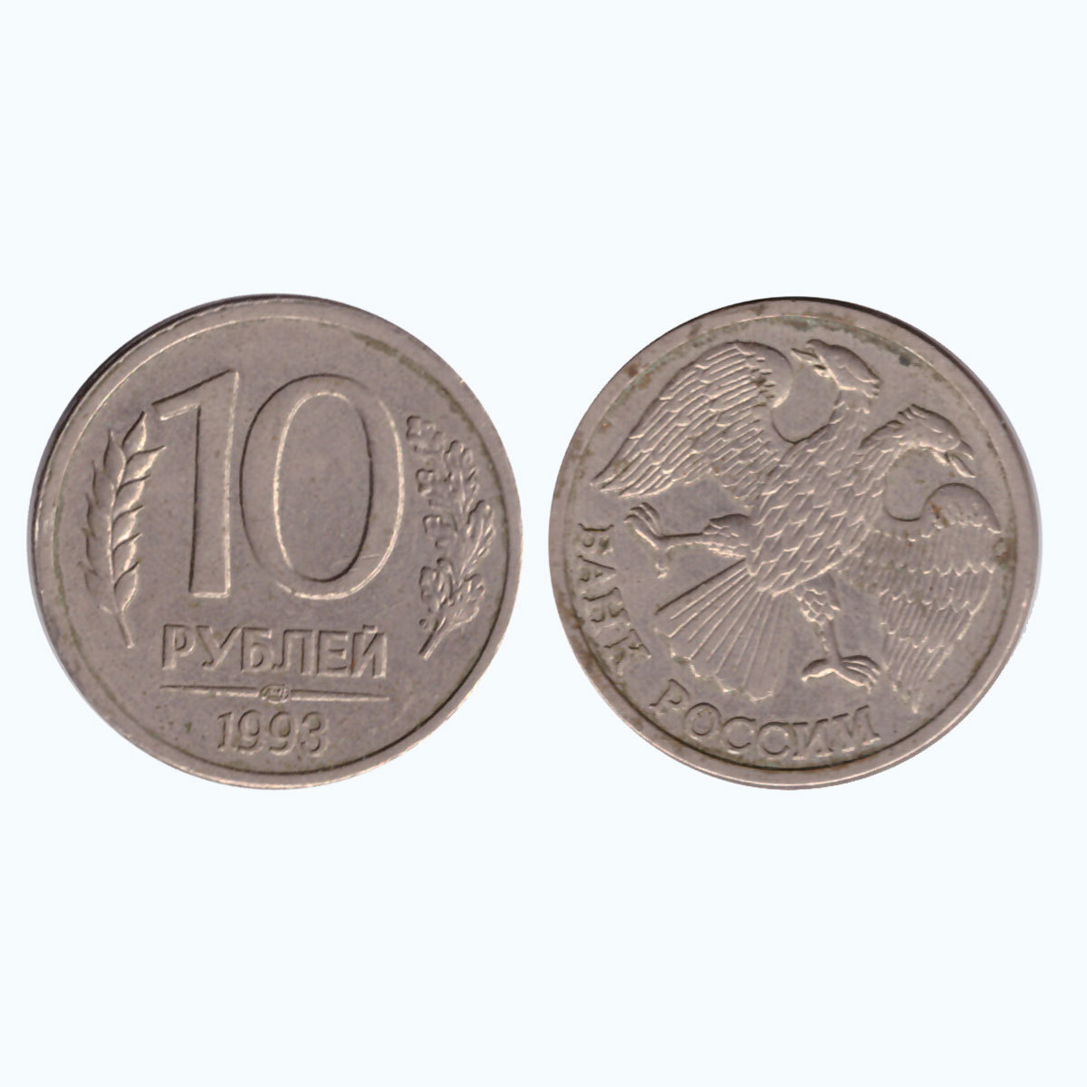 10 рублей 1993 года (лмд). Брак - поворот аверс/реверс, примерно на 45 градусов. VF