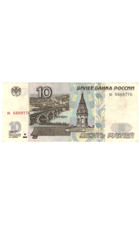 10 рублей 1997 г. без модификации Красивый номер 6669776
