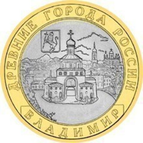 10 рублей 2008 г. Владимир (СПМД) XF-AU