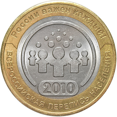 10 рублей 2010 г. Всероссийская Перепись населения. XF-AU