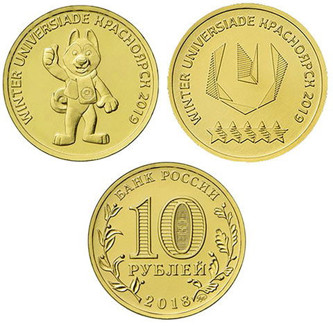 10 рублей 2019 г. ХХIХ Всемирная зимняя универсиада в Красноярске. Набор 2 шт. UNC