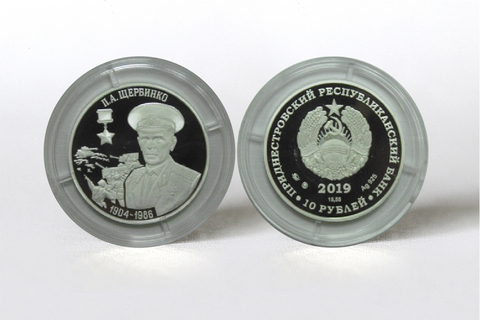 10 рублей 2019 П.А. Щербинко - герой Советского Союза 1904-1986. Приднестровье. Серебро