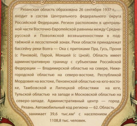 10 рублей 2020 год. Регионы РФ - Рязанская область. ММД в буклете Гознака