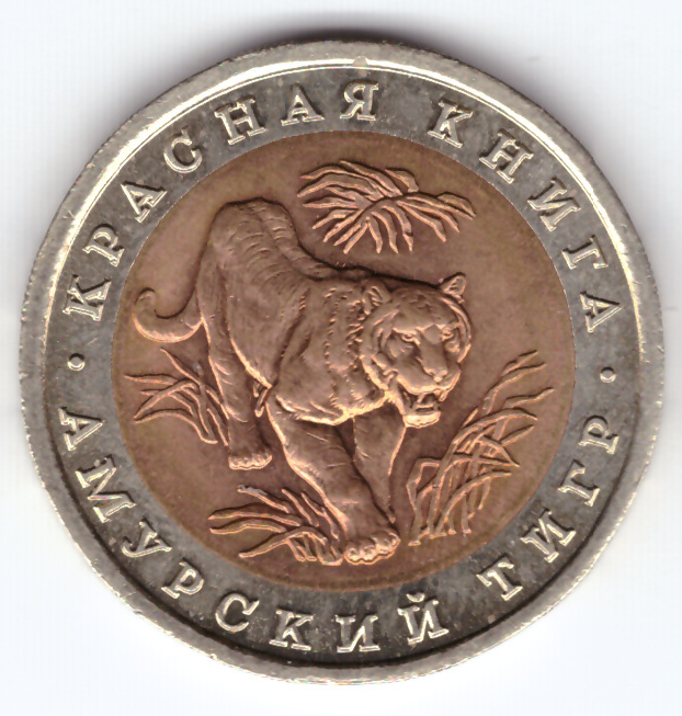 Центральный банк Российской Федерации продолжил выпуск новых монет серии "Красная книга" и 29 июля 1992 года он выпустил в обращение монету 10 рублей «Амурский тигр».