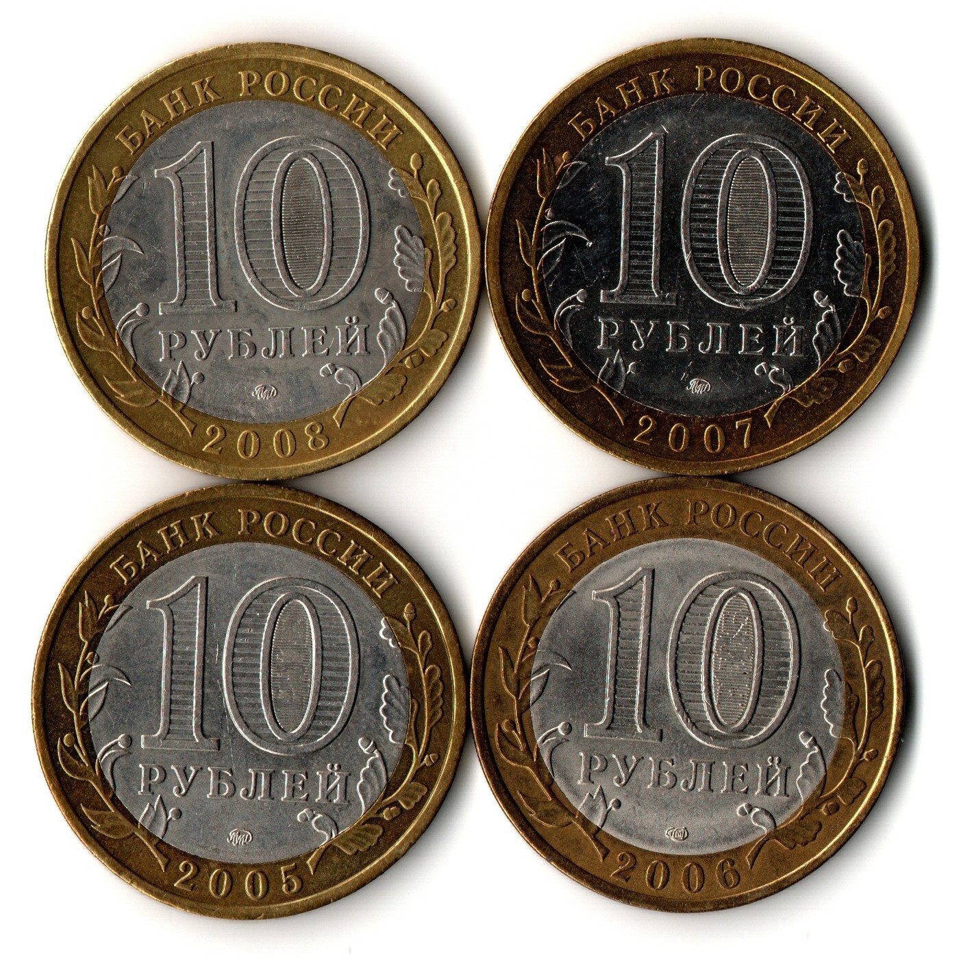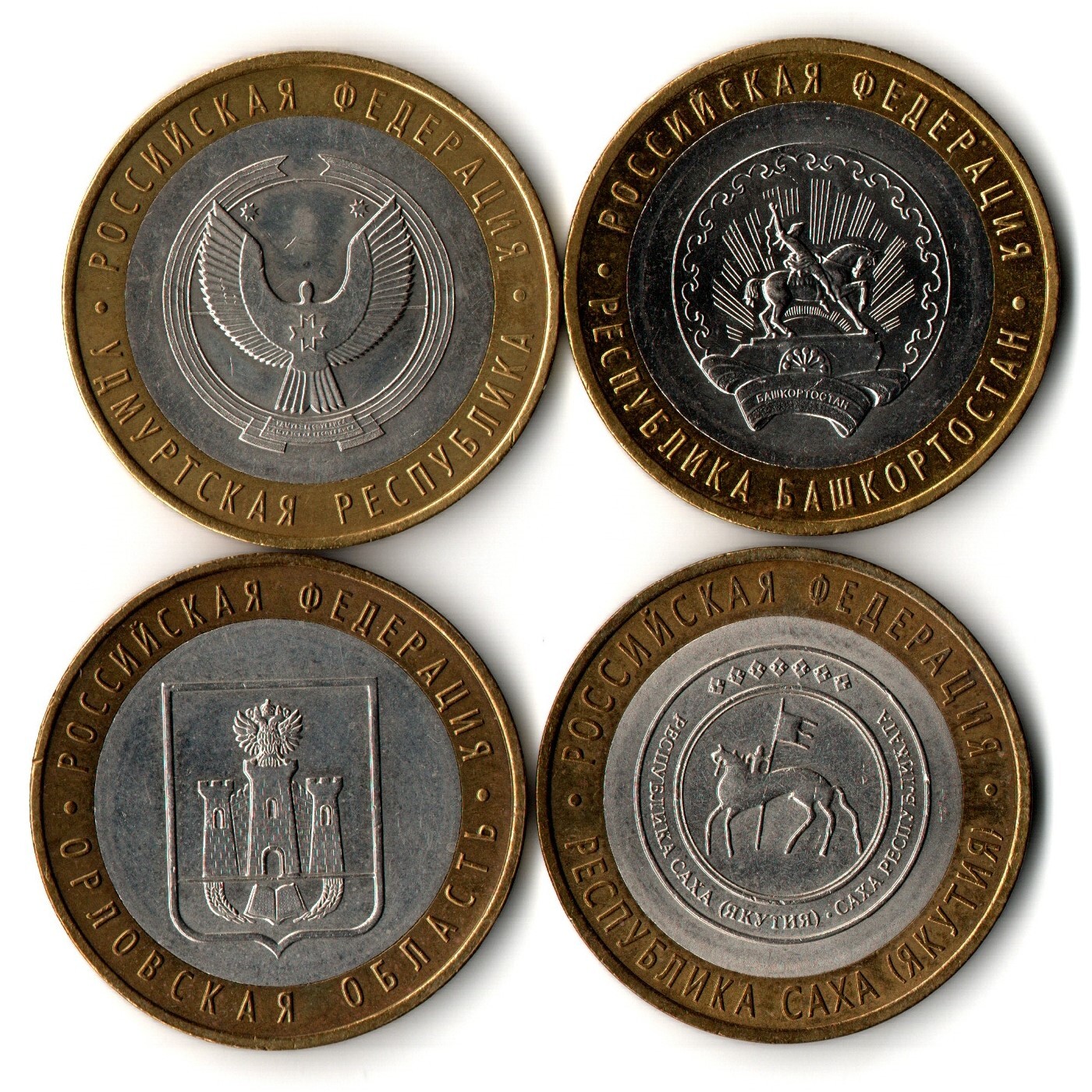 10 рублей биметалл 4 шт. Орловская, Удмуртская, Саха, Башкортостан XF