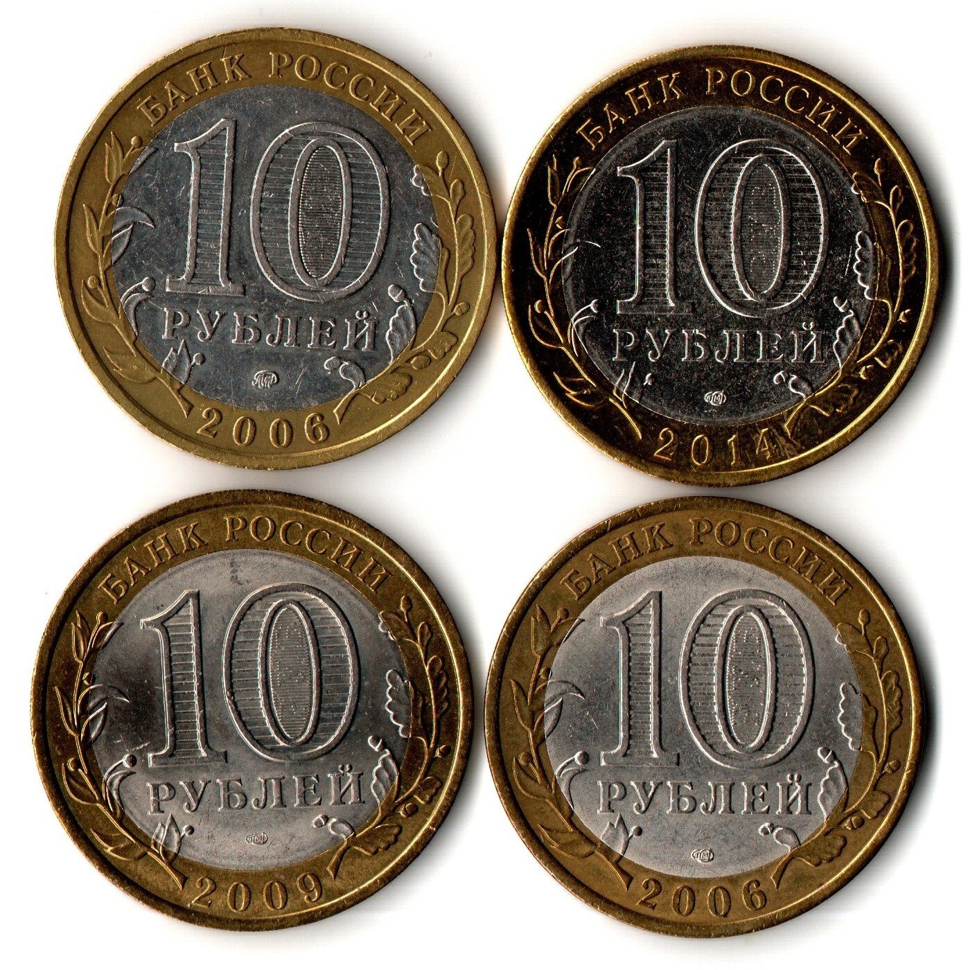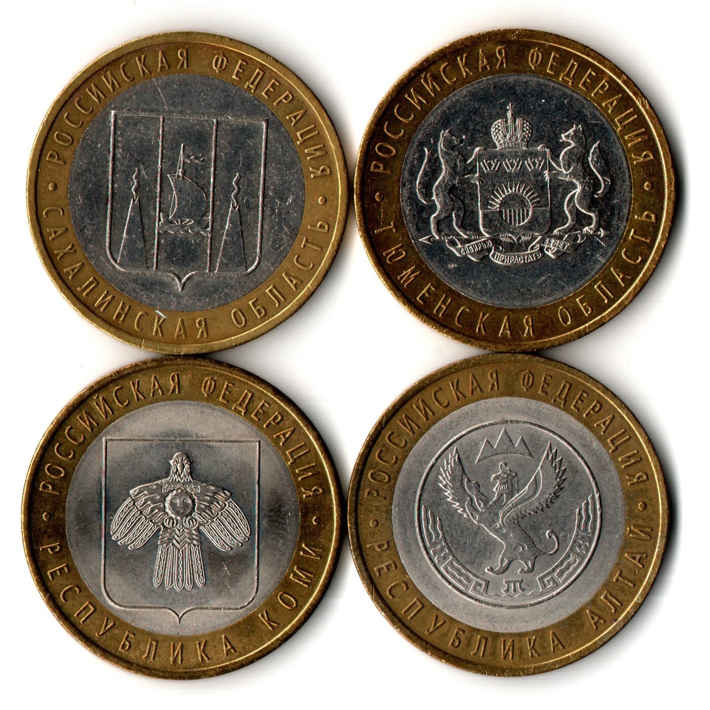 10 рублей биметалл 4 шт. Тюменская, Сахалинская, Алтай, Коми XF