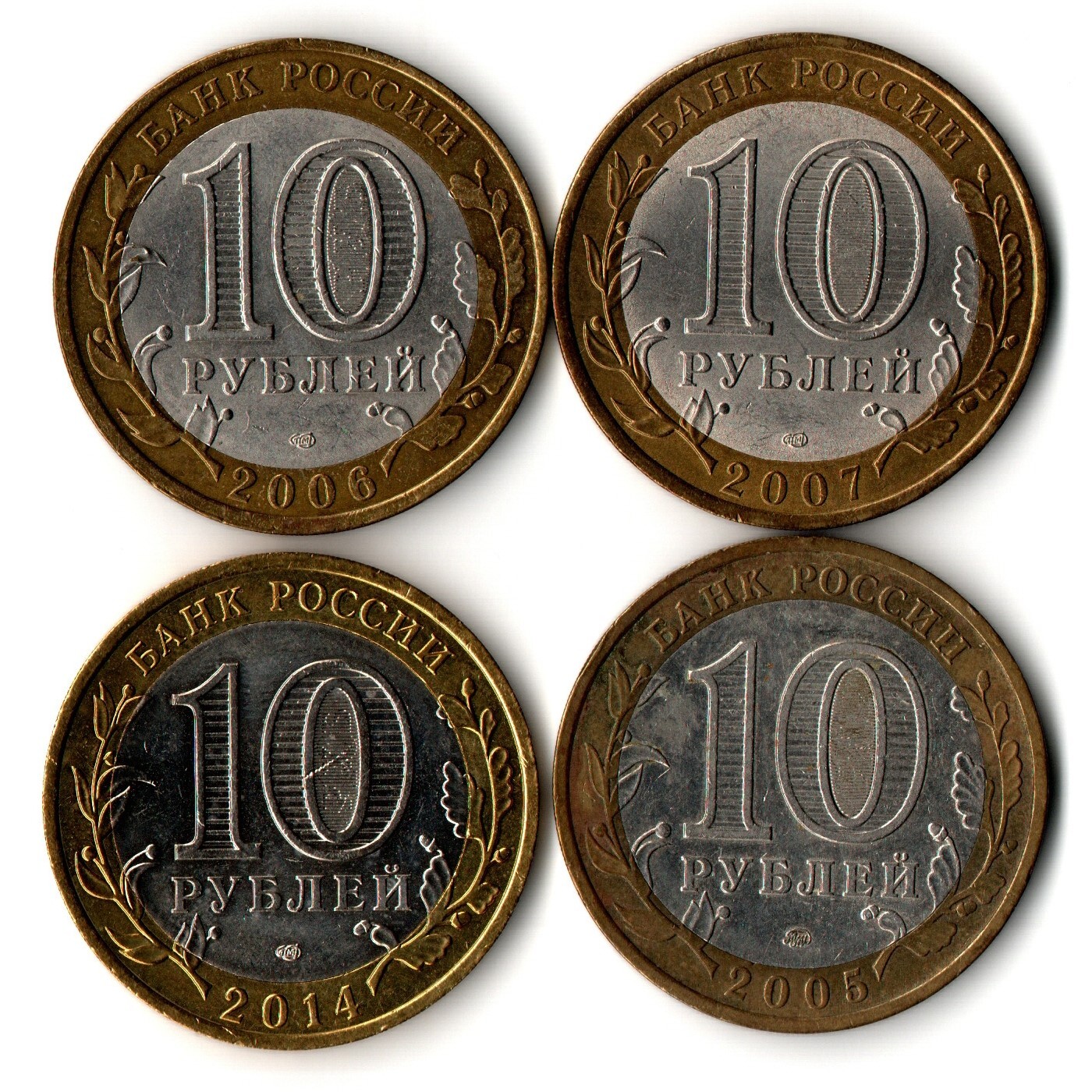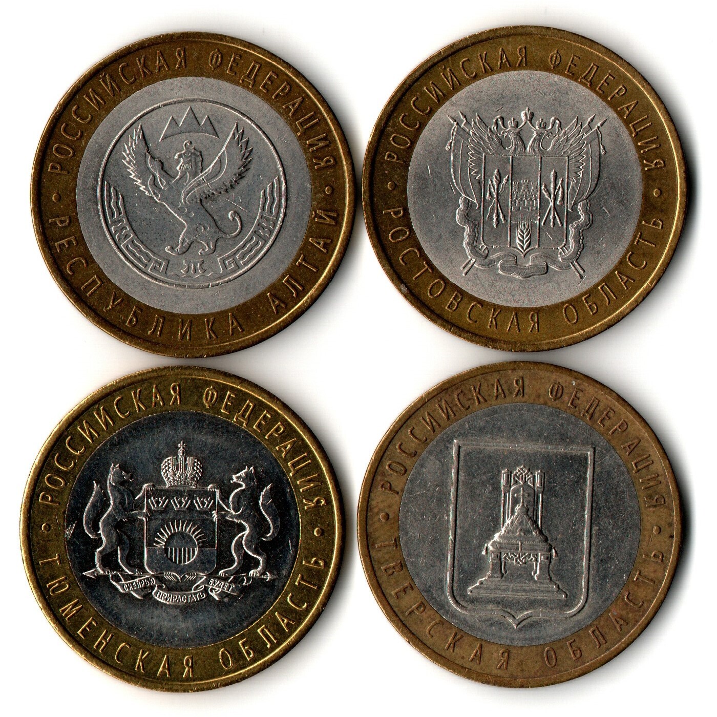 10 рублей биметалл 4 шт. Тюменская, Тверская, Алтай, Ростовская XF