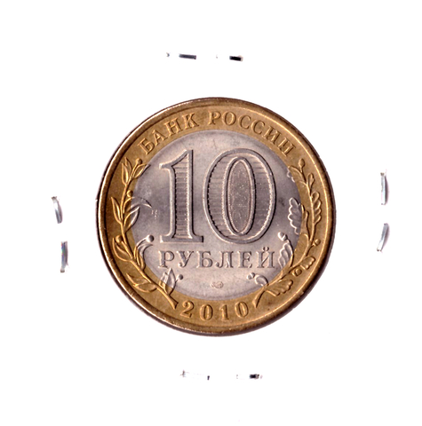 Монета выпущена в 2010 году Центральным Банком РФ. Чеченская Республика входит в состав России с 19 века (присоединилась после Кавказской войны). Долгое время была Чеченско-Ингушской автономной областью, пока в 1992 не разделилась на Чечню и Ингушетию. На реверсе изображен герб Чеченской Республики. ЧЯП