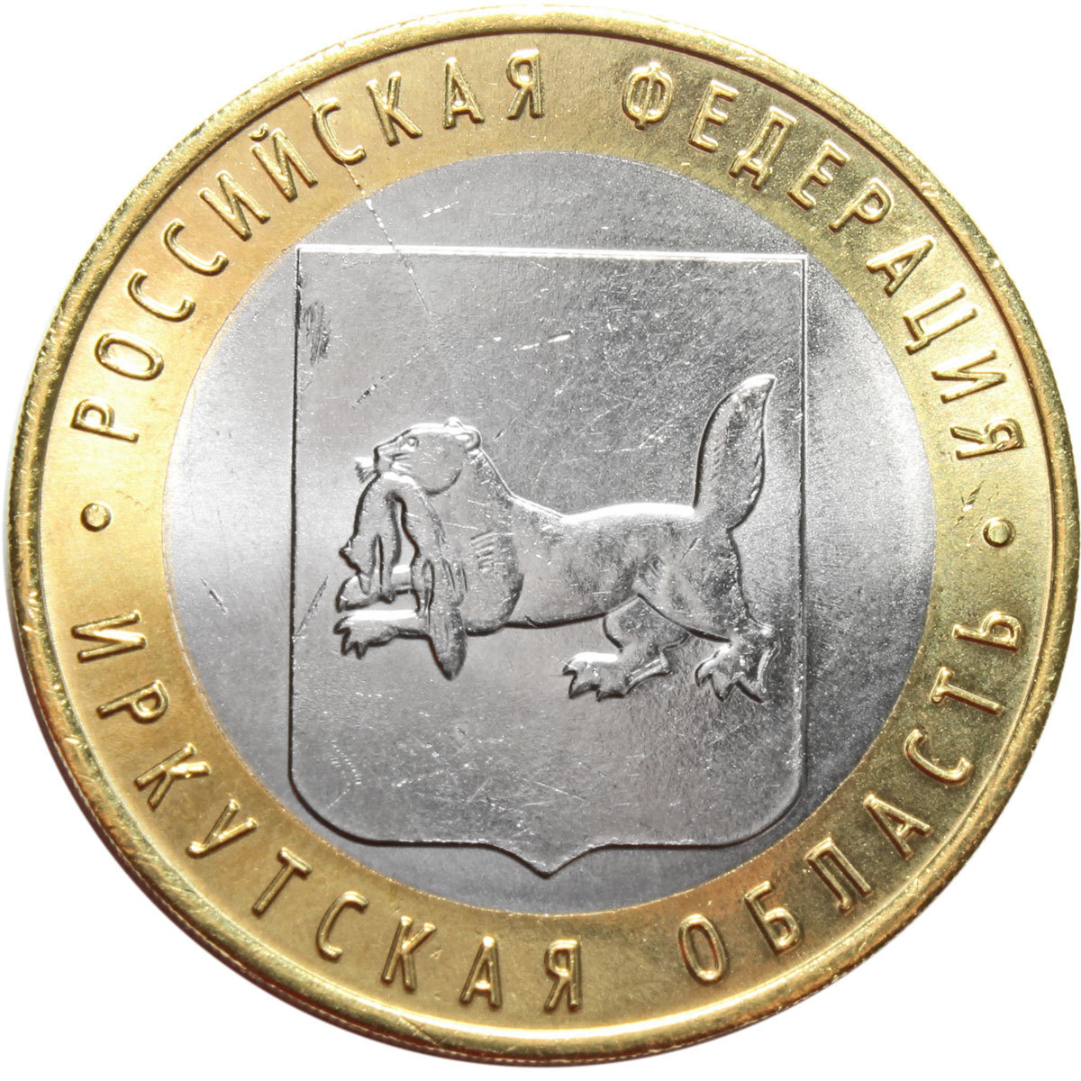 Изображение герба Иркутской области, по окружности — надписи: вверху — «Российская Федерация», внизу — «Иркутская область».
