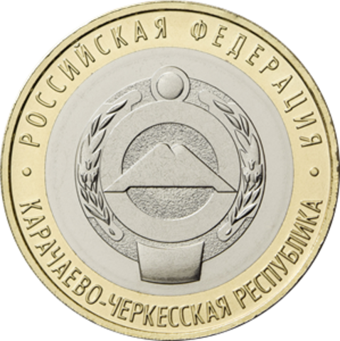 На оборотной стороне монеты расположено рельефное изображение герба Карачаево-Черкесской Республики; на кольце по окружности имеются надписи, разделенные точками: в верхней части — «РОССИЙСКАЯ ФЕДЕРАЦИЯ», в нижней части — «КАРАЧАЕВО-ЧЕРКЕССКАЯ РЕСПУБЛИКА».