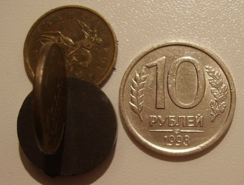 С 1993 года для чеканки 10 рублевых монет вместо медно-никелевых заготовок, начали применять стальные заготовки с мельхиоровом покрытием. Как следствие, смена металла повлияла на магнитные свойства денежных знаков.