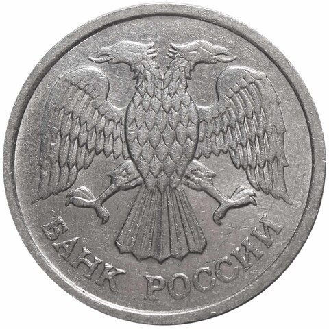 Аверс: в середине двуглавый орел с опущенными крыльями, перья без просечек, внизу надпись «БАНК РОССИИ».