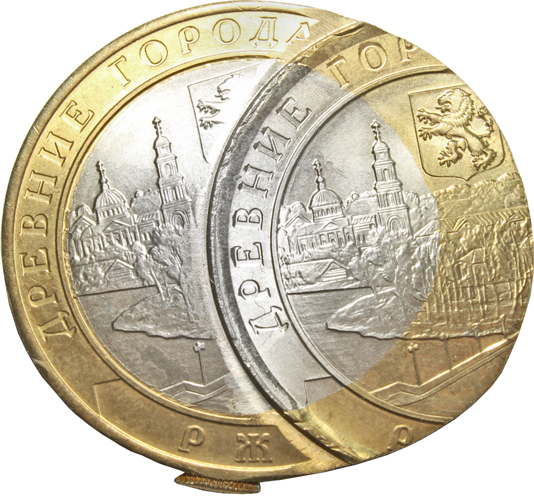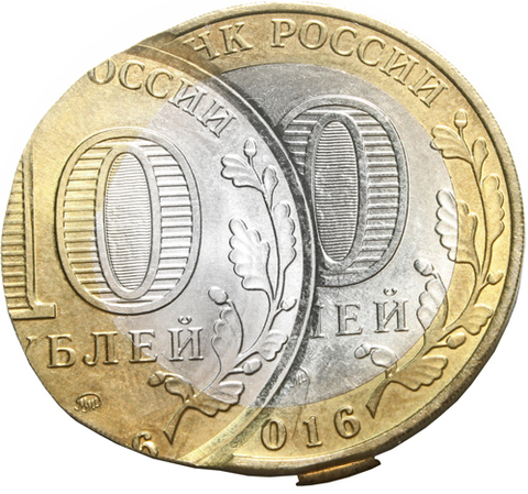 10 рублей Ржев 2016 г. Брак - двойной удар.