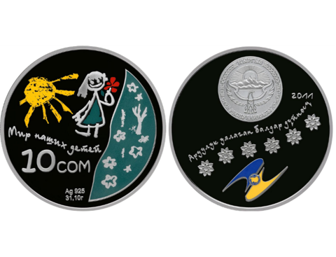 10 сом 2011 год. Киргизия . Мир наших детей ЕврАзЭС Серебро
