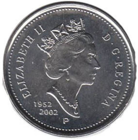 10 центов "50 лет правления. Парусник" 2002 год UNC (Канада)