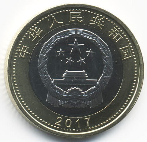 Реверс: В центре монеты изображён герб Китая; вверху полукругом надпись на китайском языке:: НАРОДНЫЙ БАНК КИТАЯ; внизу полукругом - год чеканки монеты - 2017.