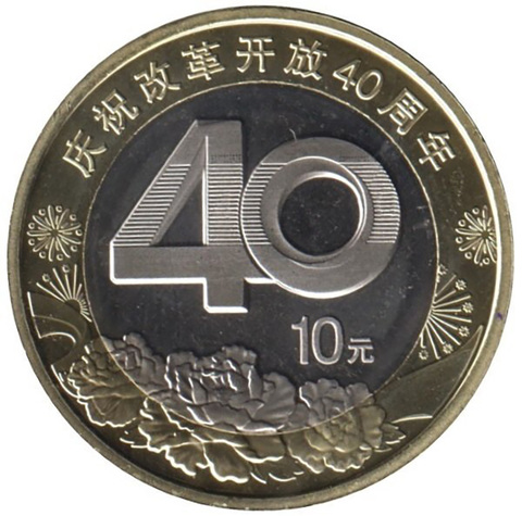 10 юаней. 40 лет политике реформ и открытости. Китай. 2018 год. UNC