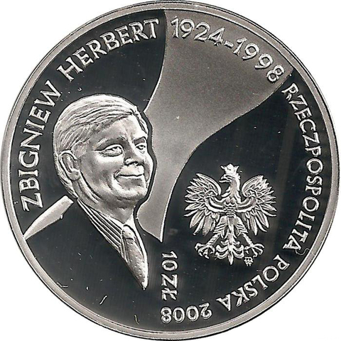 10 злотых. Збигнев Херберт (1924-1998). 2008 год. Польша.