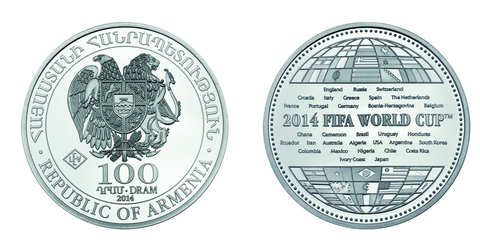 100 драм 2014 Армения. Футбол Чемпионат мира Бразилия 2014 Серебро