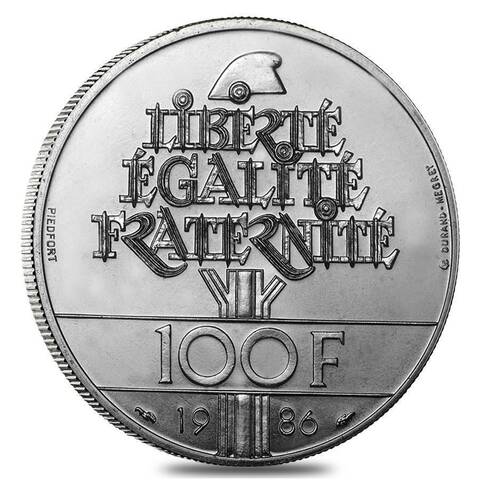 100 франков. Статуя свободы. Пъедфорт. Франция. 1986 год. Серебро