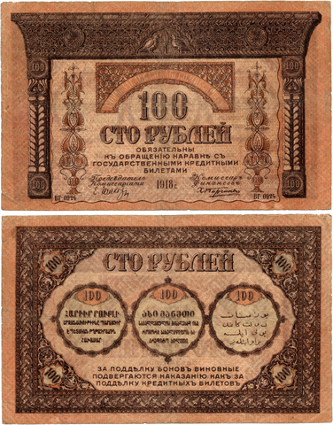 100 рублей 1918 год Закавказский Комиссариат. Закавказье