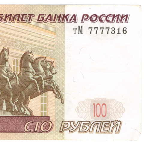 100 рублей 1997 г. Модификация 2004 г. Серия тМ 7777316