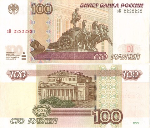 100 рублей 1997 Красивый номер лебеди 2222222 XF