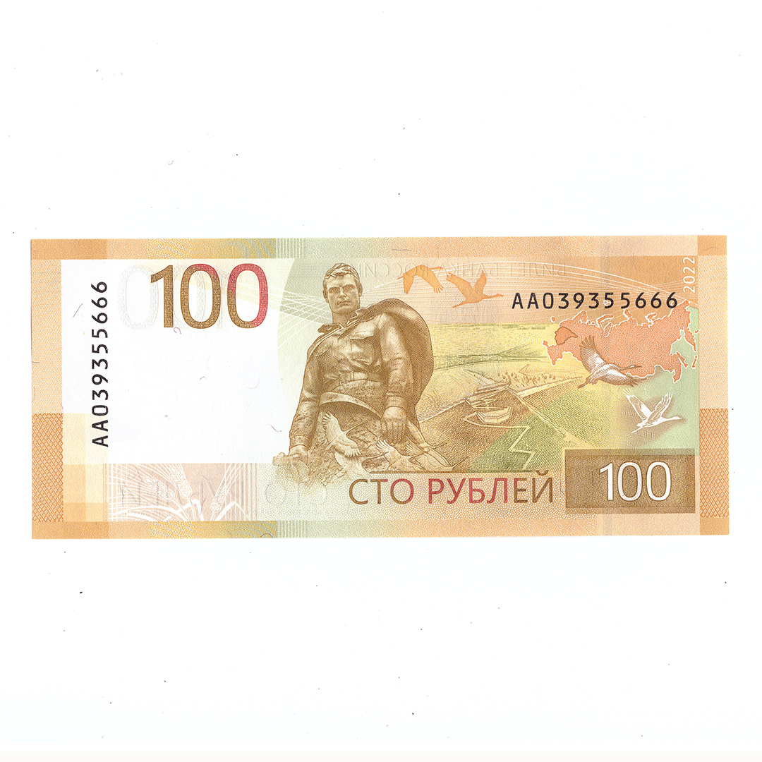 100 рублей 2022 год Ржев красивый номер АА ******666