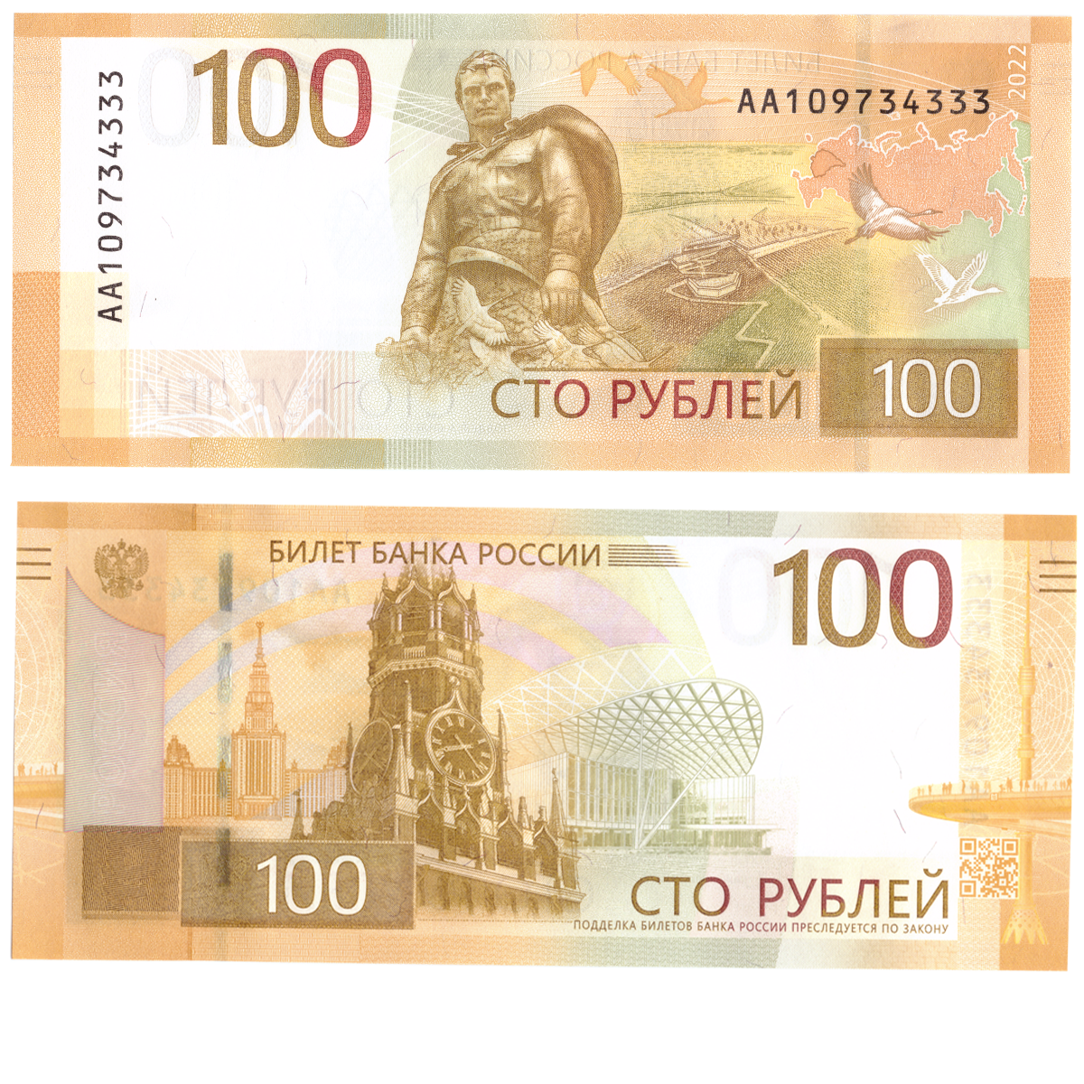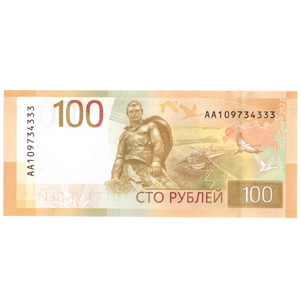 100 рублей 2022 года Ржев Модернизированная банкнота серия АА красивый номер ***333