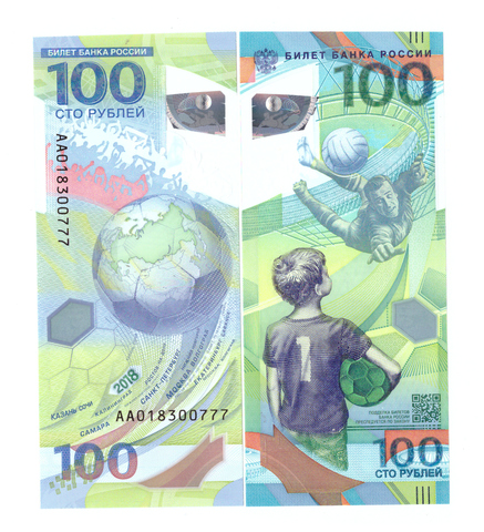 100 рублей банкнота Чемпионат мира по футболу в России 2018