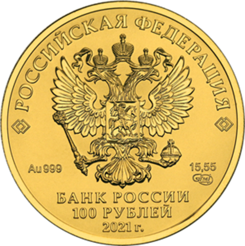 Аверс: На лицевой стороне монет расположено рельефное изображение Государственного герба Российской Федерации, имеются надписи: «РОССИЙСКАЯ ФЕДЕРАЦИЯ», «БАНК РОССИИ», номинал монет и дата, обозначение металла по Периодической системе элементов Д.И. Менделеева, проба сплава, товарный знак Московского монетного двора и масса драгоценного металла в чистоте.