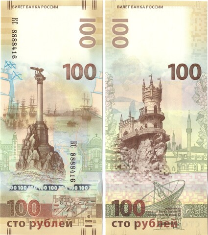 100 рублей Крым Красивый номер КС 8888416 пресс UNC